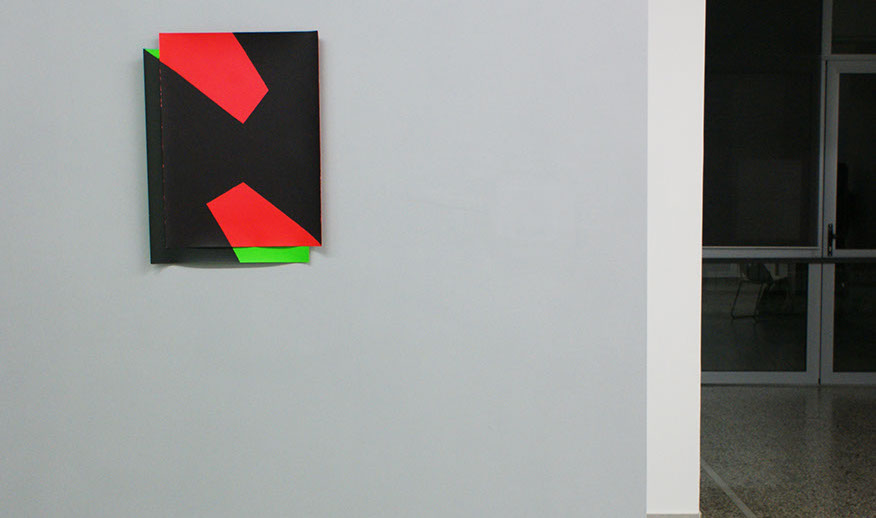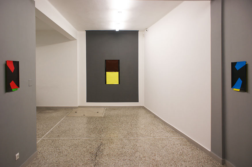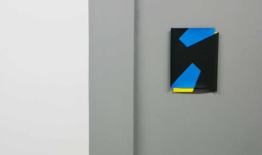 In friends of friends are friends Vajd confronts us with a kindred system, where on first glance minimalist, seemingly flawless, geometric photograms, reinforced by bold aniline-based colours are paired to couples. These couples, or better, situations, gain momentum as they incite our imagination to envision all the inherent storylines contained in the sombre areas that become centre of the stage and ersatz for the representational. Models of mental states.
