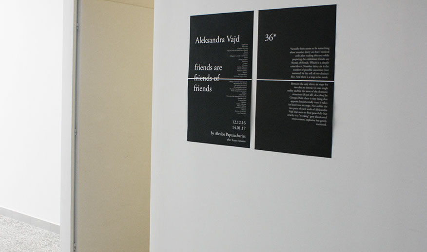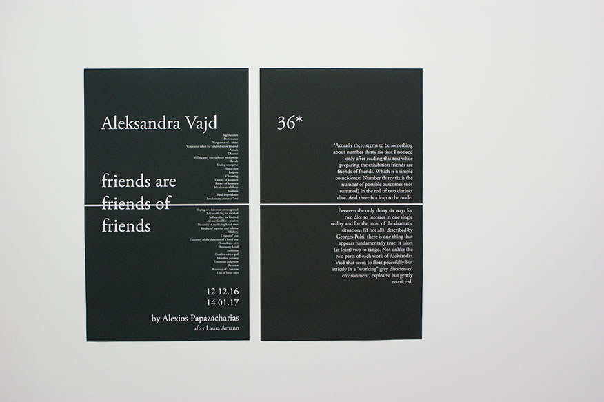 *Actually there seems to be something about number thirty six that I noticed only after reading this text while preparing the exhibition friends are friends of friends. Which is a simple coincidence. Number thirty six is the number of possible outcomes (not summed) in the roll of two distinct dice. And there is a leap to be made.